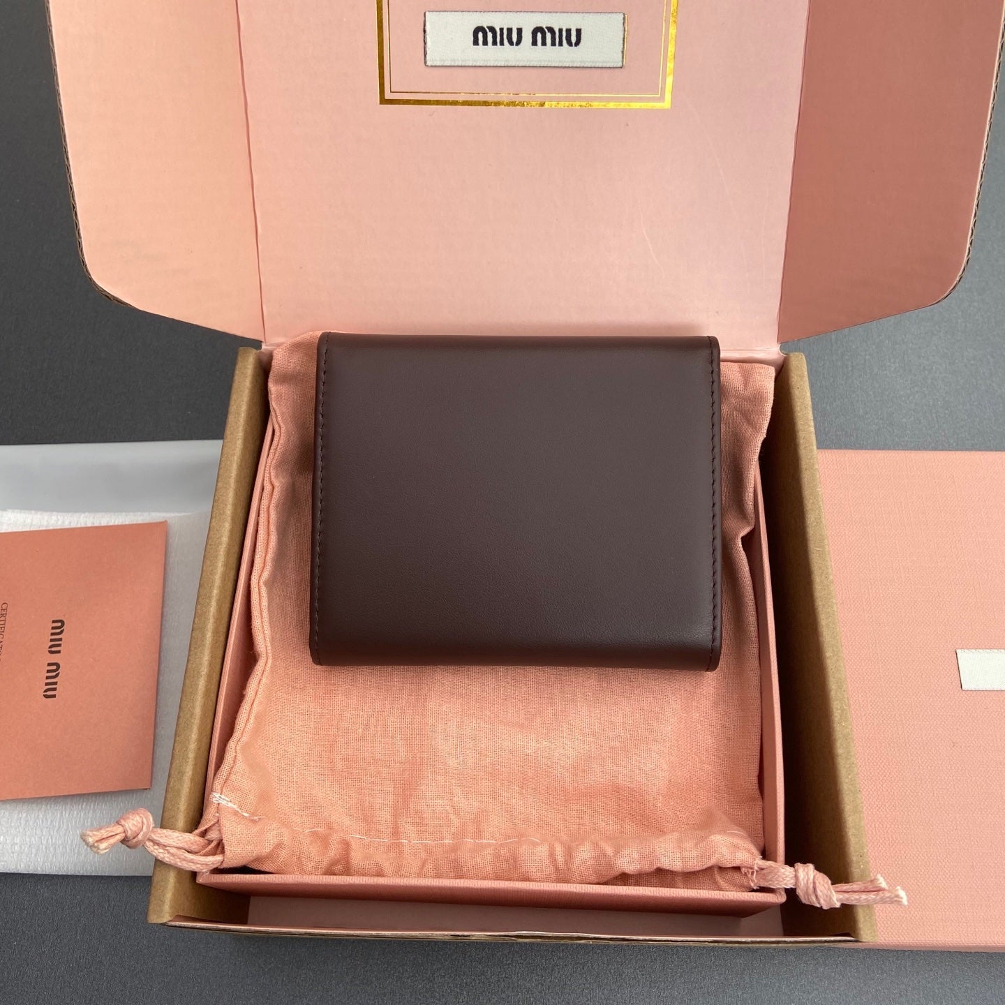 WALLET 12 IN ZAMBEZI BROWN SMOOTH CALFSKIN GOLD HARDWARE