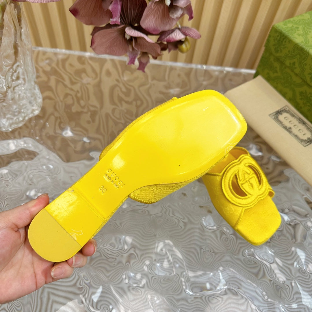 WOMEN'S INTERLOCKING G SLIDE SANDAL LEMON CANVAS