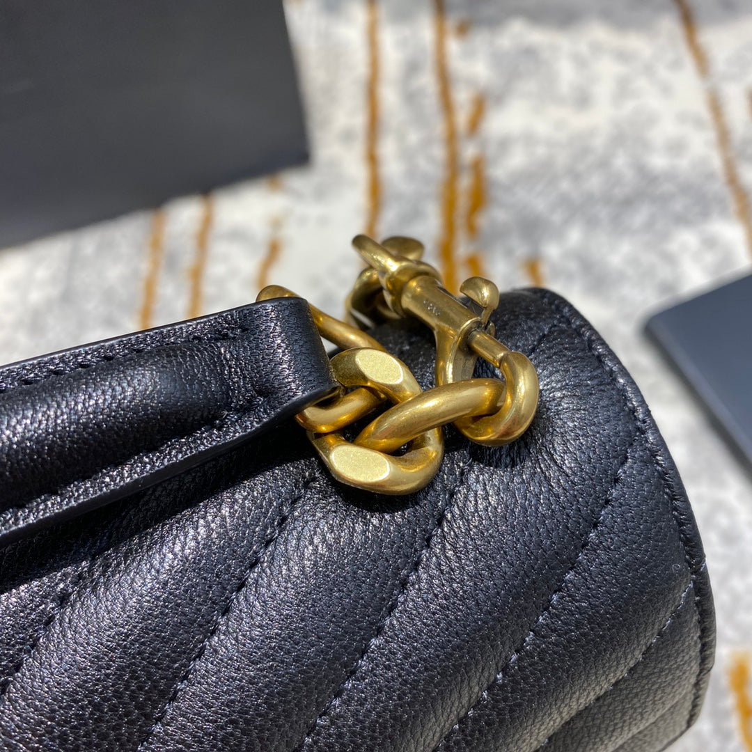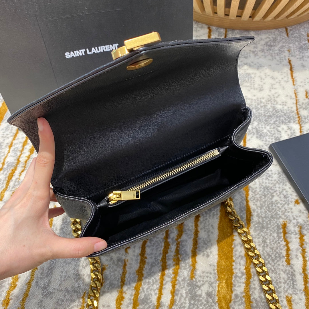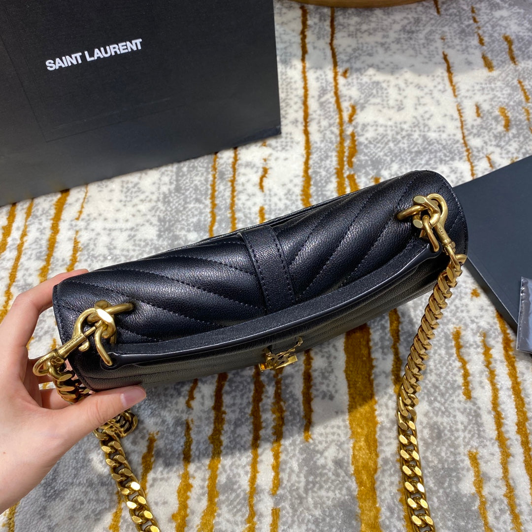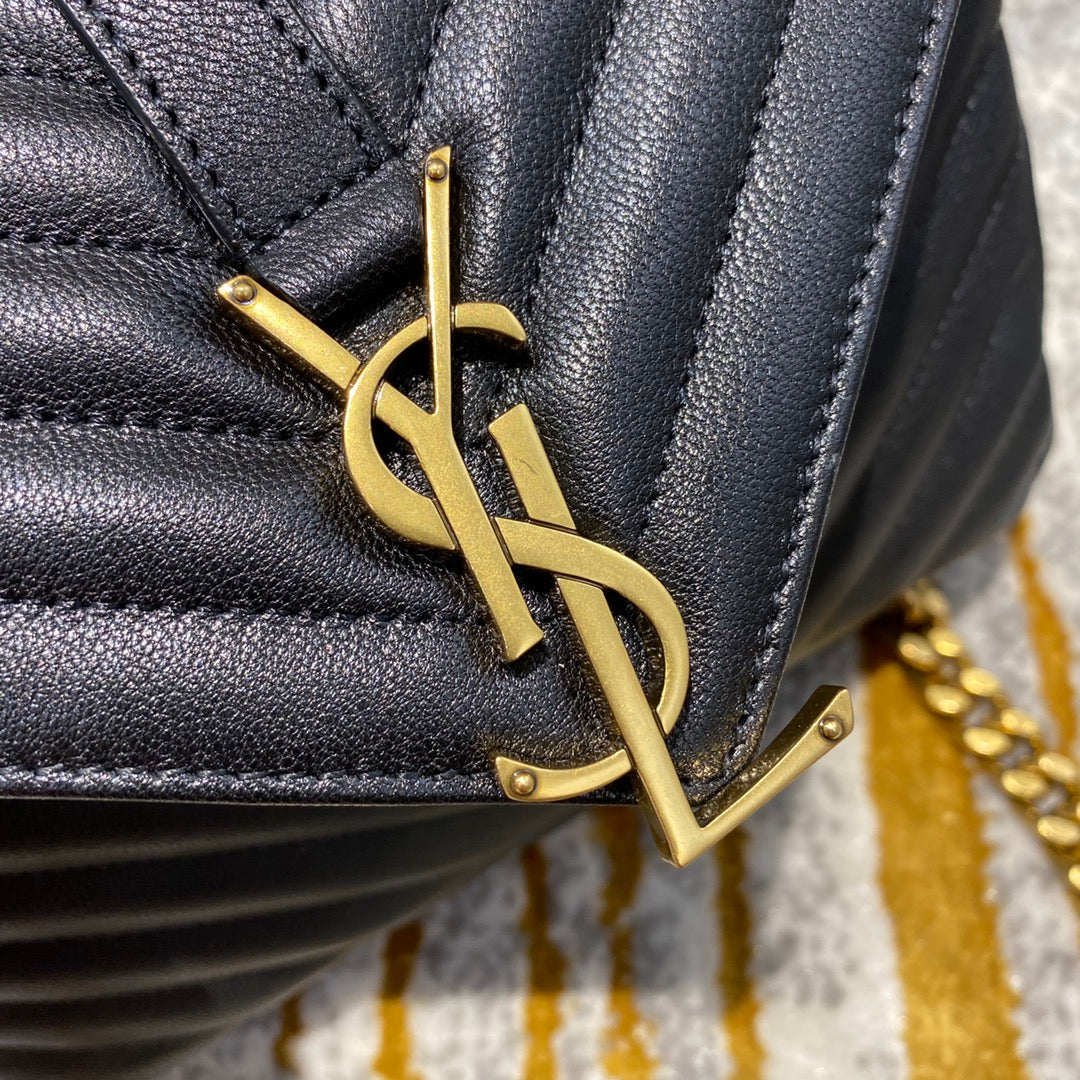 YSL College Medium 24cm Black Quilted Calfskin Gold Hardware