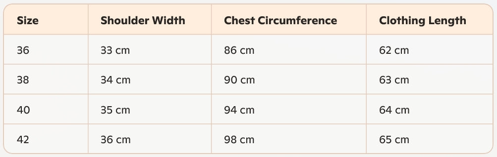 - Size : 36, 38, 40, 42
