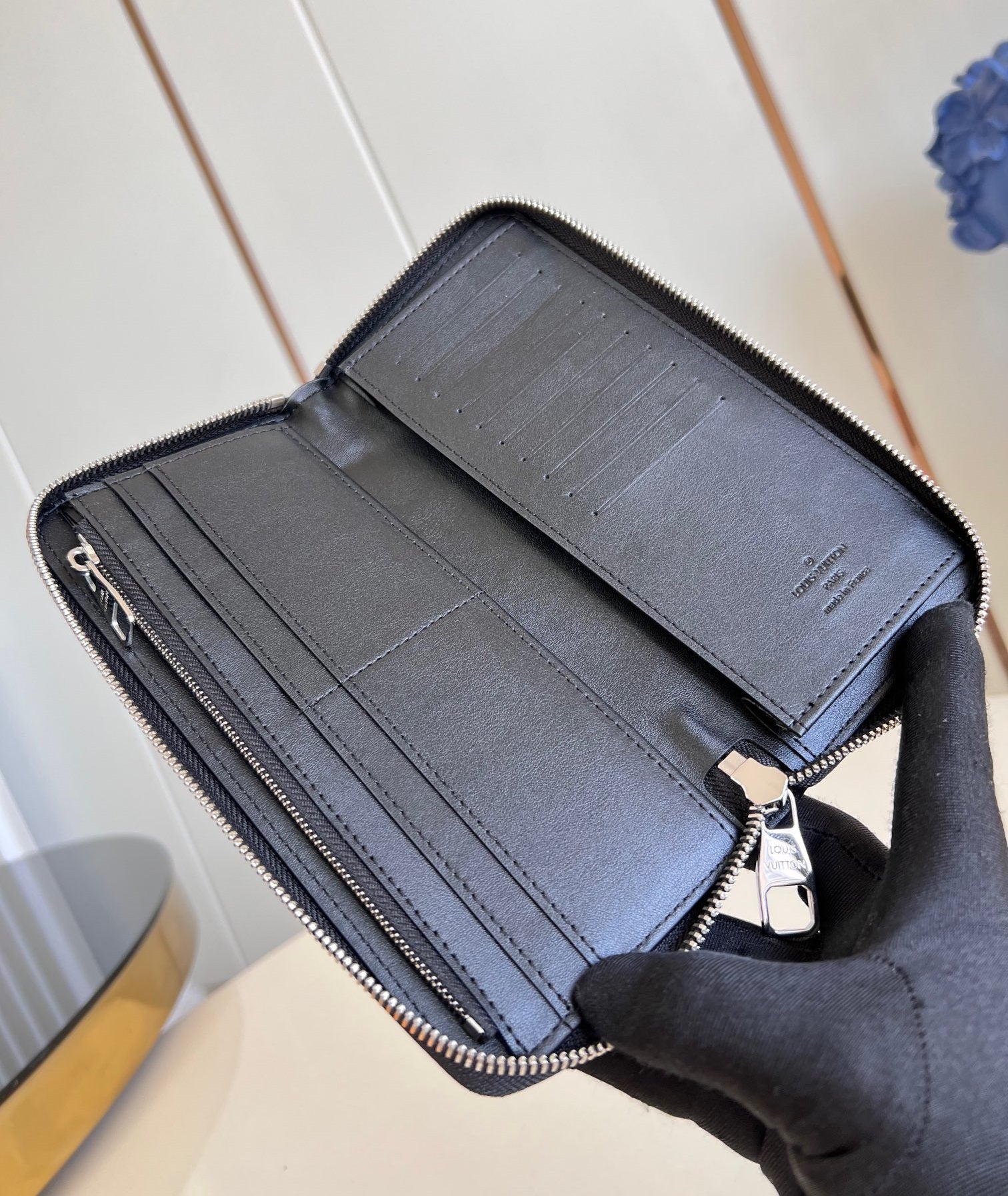 ZIPPY VERTICAL WALLET 20CM BLACK CALFSKIN